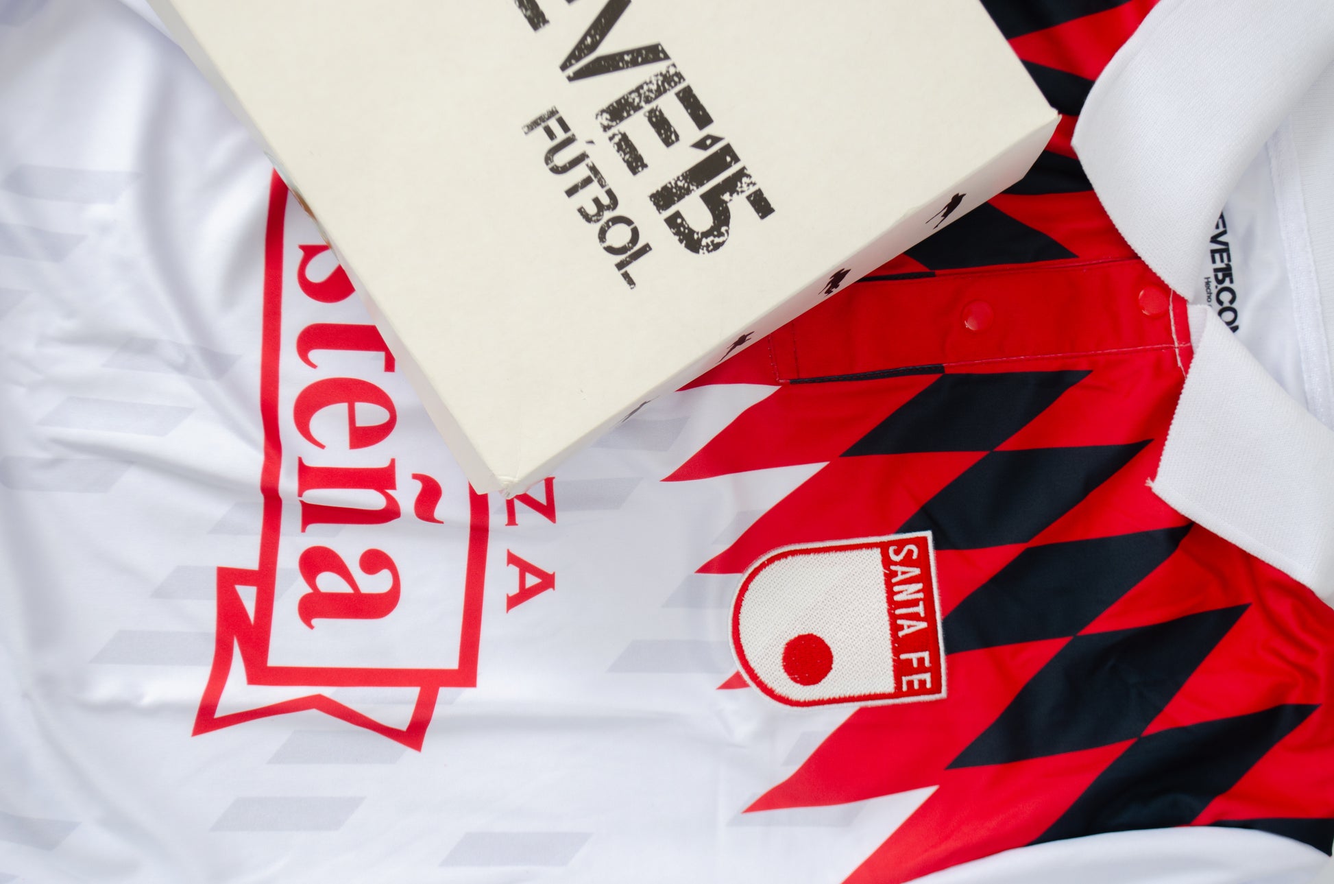 Réplica de la camiseta suplente de Independiente Santa Fe en la temporada 95/96, cuando el equipo cardenal obtuvo una clasificación a un torneo continental después de 16 años, al clasificar a la Copa Conmebol.